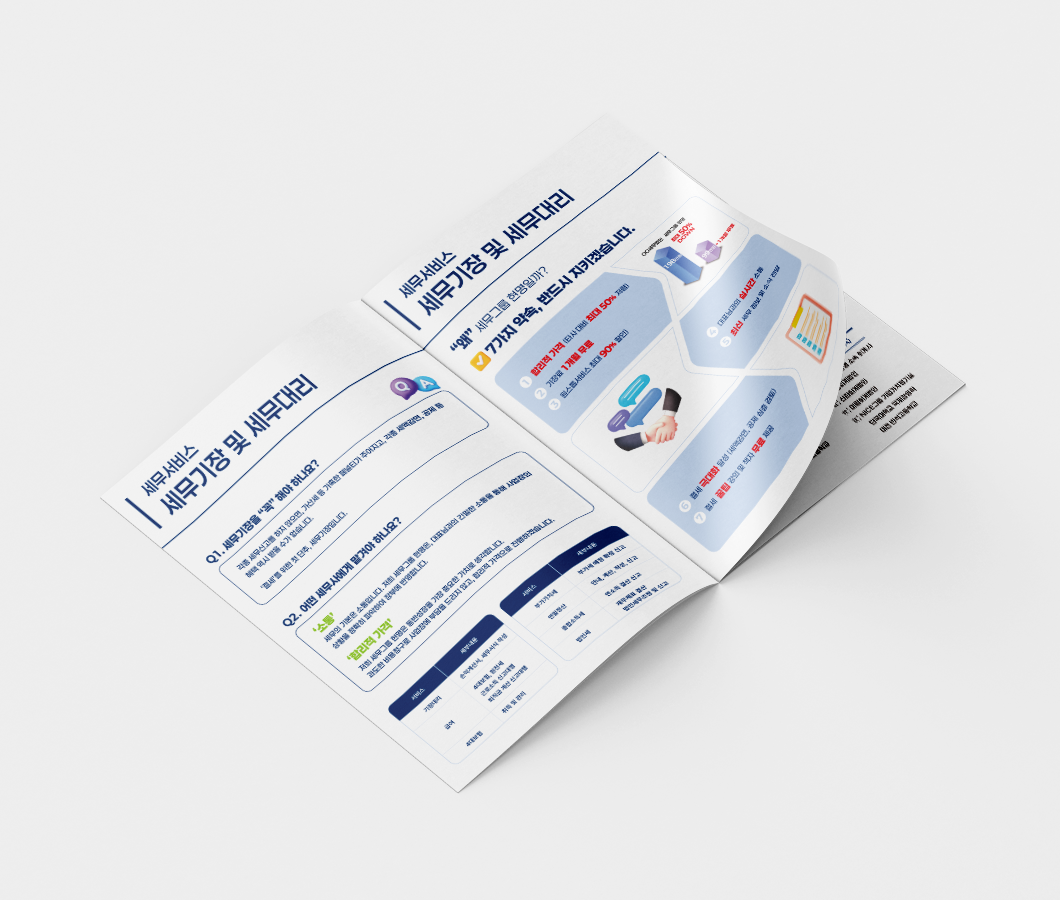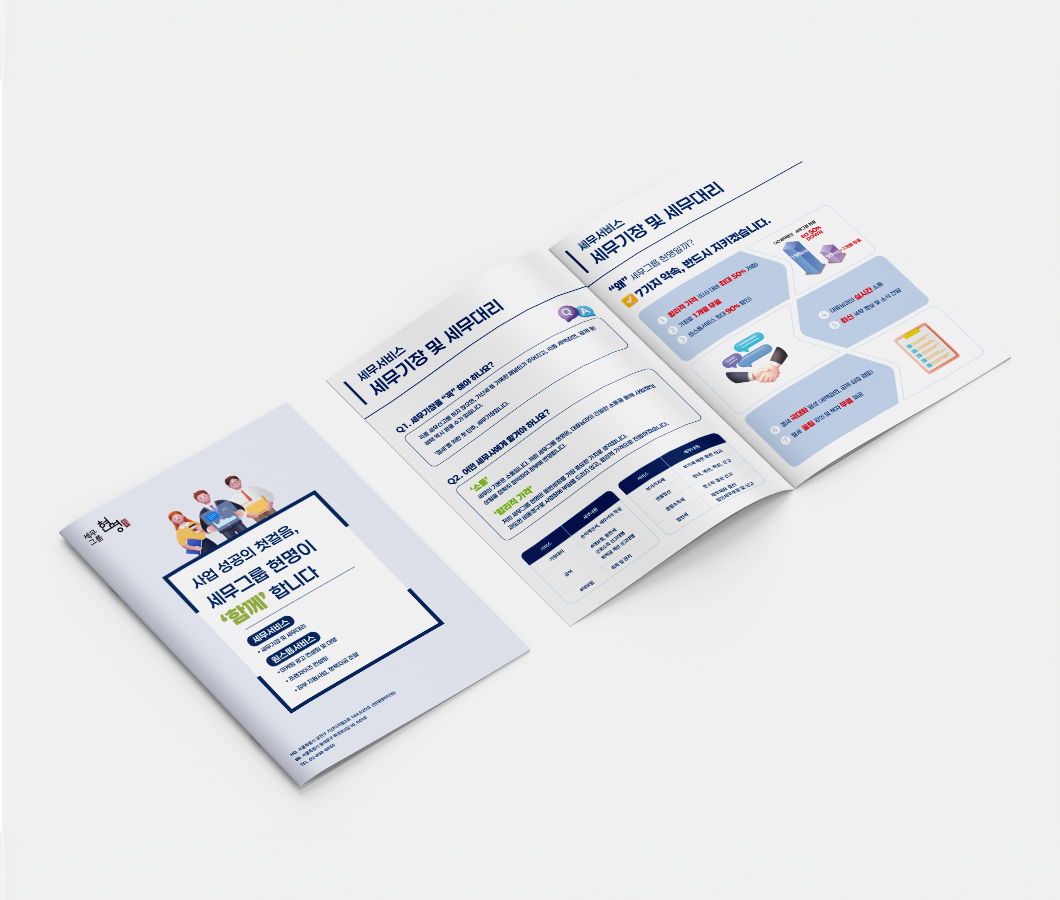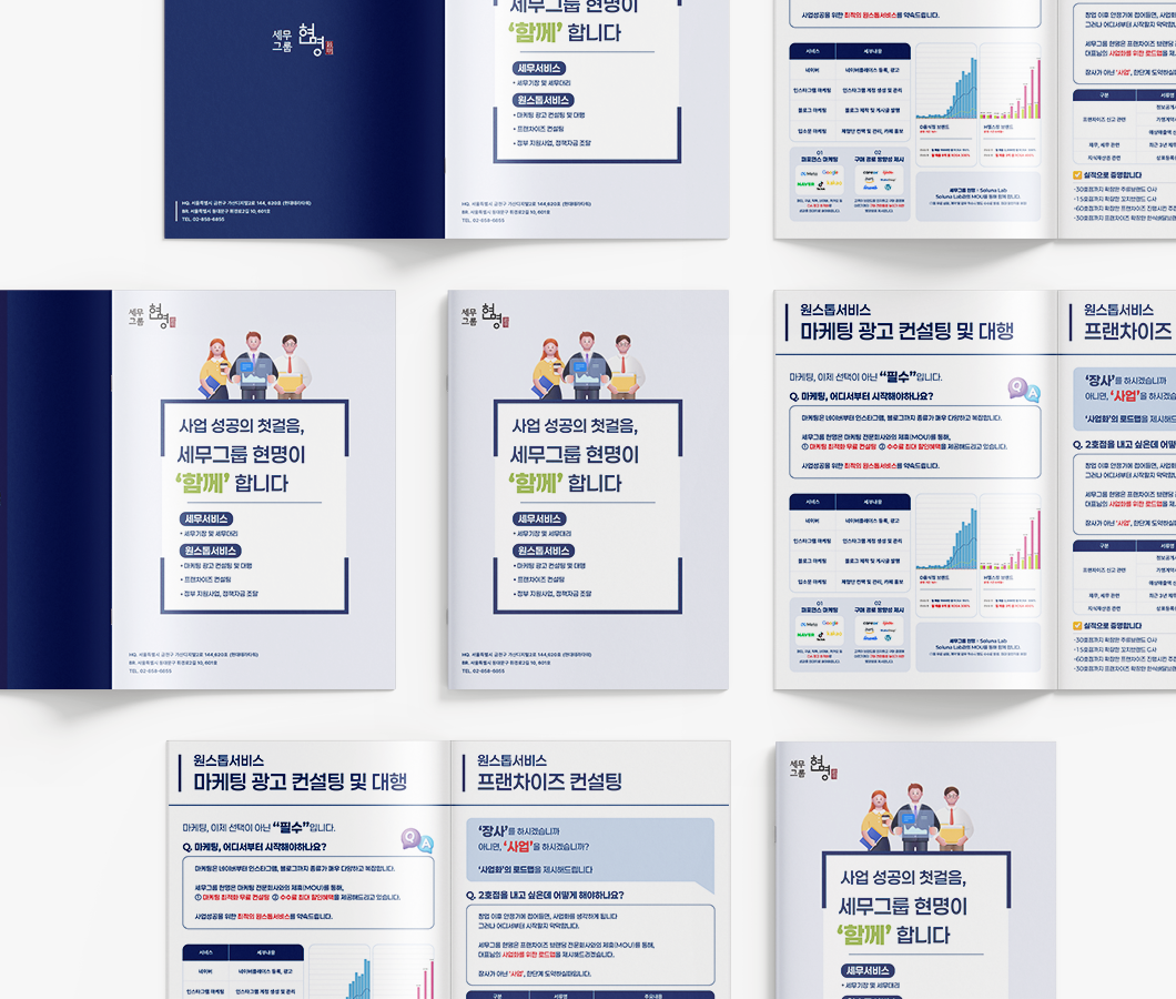 HM파트너스_브로슈어 네이비와 화이트 컬러를 중심으로 안정감을 주고, 핵심 메시지는 포인트 컬러로 시각적 집중도를 높였습니다. 친근한 일러스트와 명확한 레이아웃을 통해 정보 전달력을 강화하며, 전문적이면서도 접근성 있는 브랜드 이미지를 표현하였습니다.