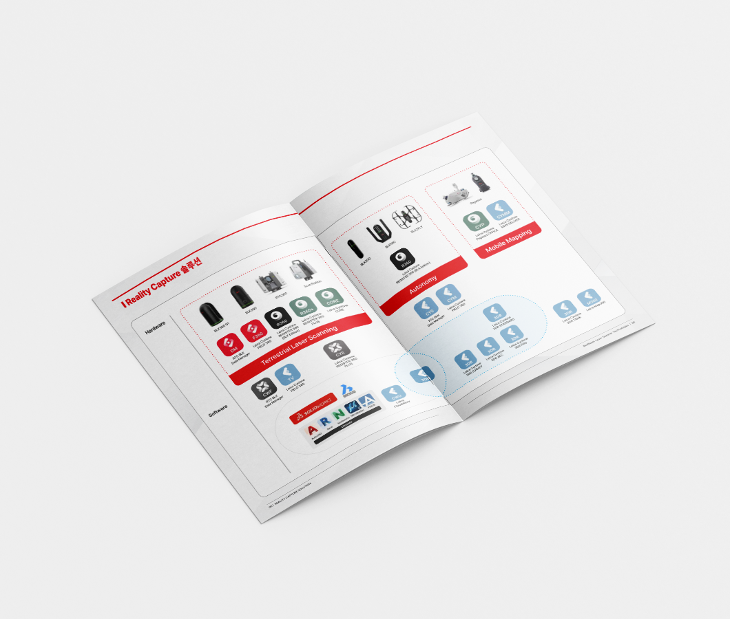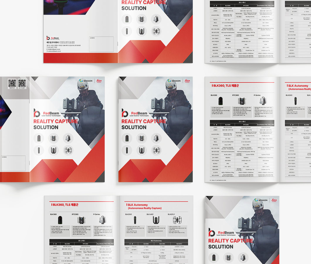 레드빔_카탈로그 장비와 소프트웨어를 직관적으로 소개할 수 있도록 구성한 기업용 카탈로그 디자인입니다. 브랜드 컬러 레드·그레이 톤을 활용하여 기술적 이미지와 전문성을 강조했으며, 제품 정보와 비교표는 가독성을 최우선으로 두고 레이아웃을 정리하였습니다.
