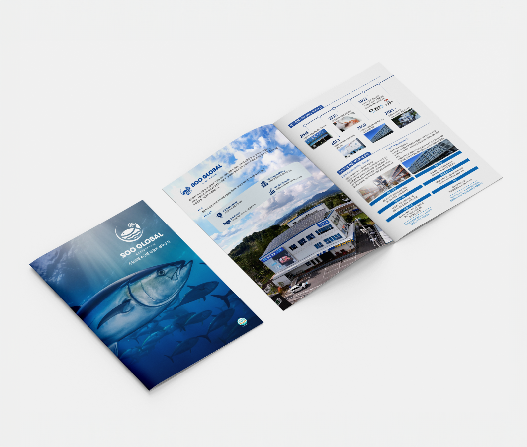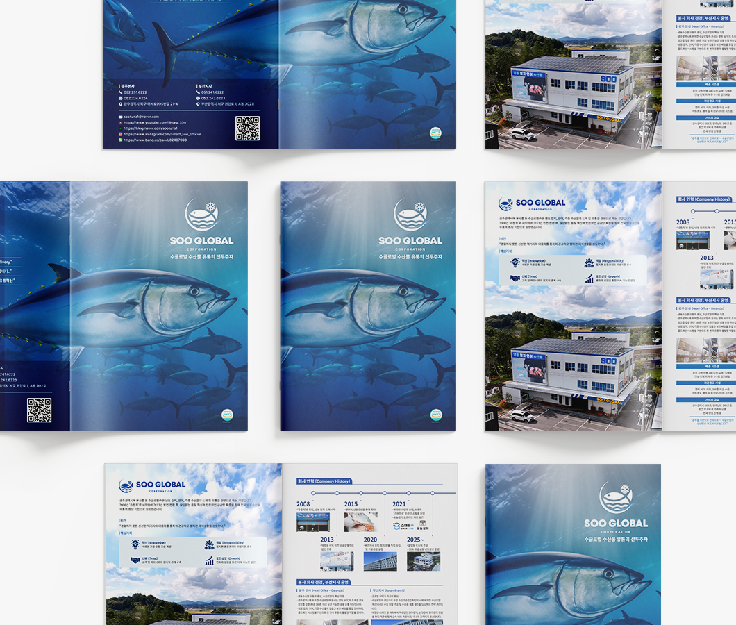 수글로벌(주)_브로슈어 이미지 중심의 레이아웃으로 기업 이미지를 직관적으로 표현하고, 사진과 정보의 균형을 통해 안정적이고 신뢰감 있는 디자인을 완성하였습니다.