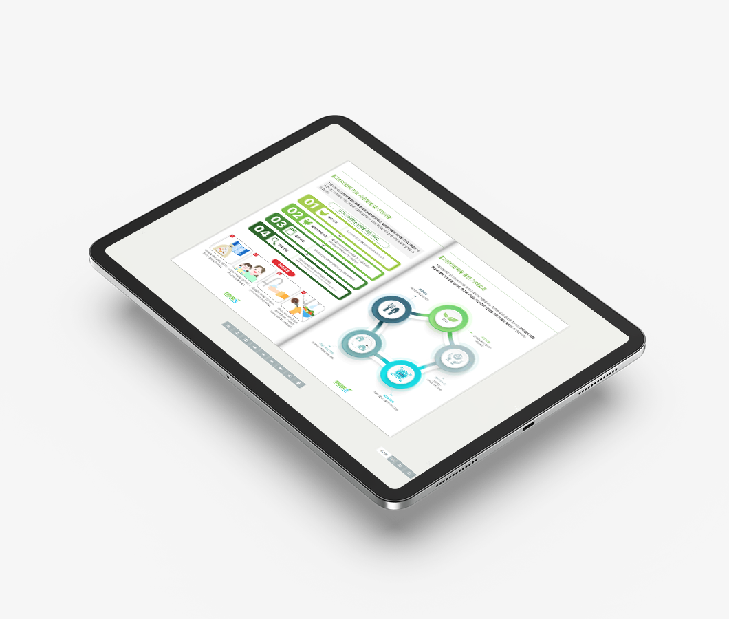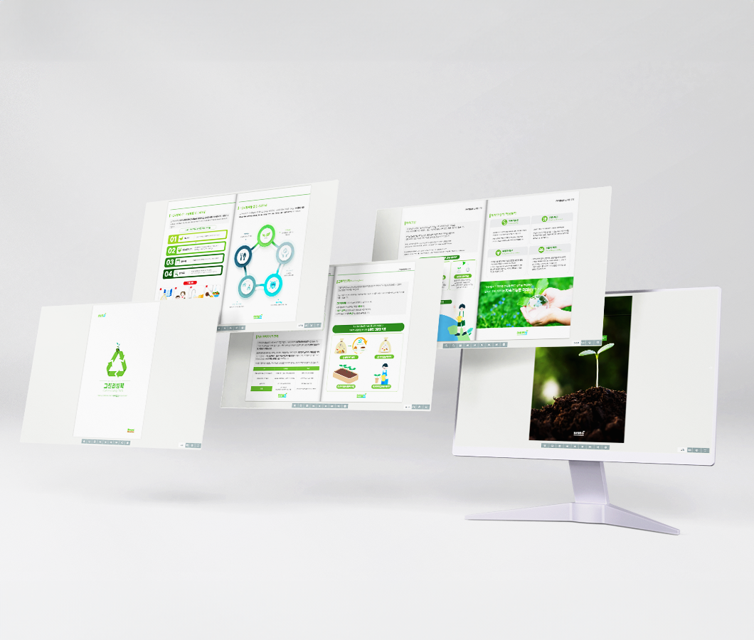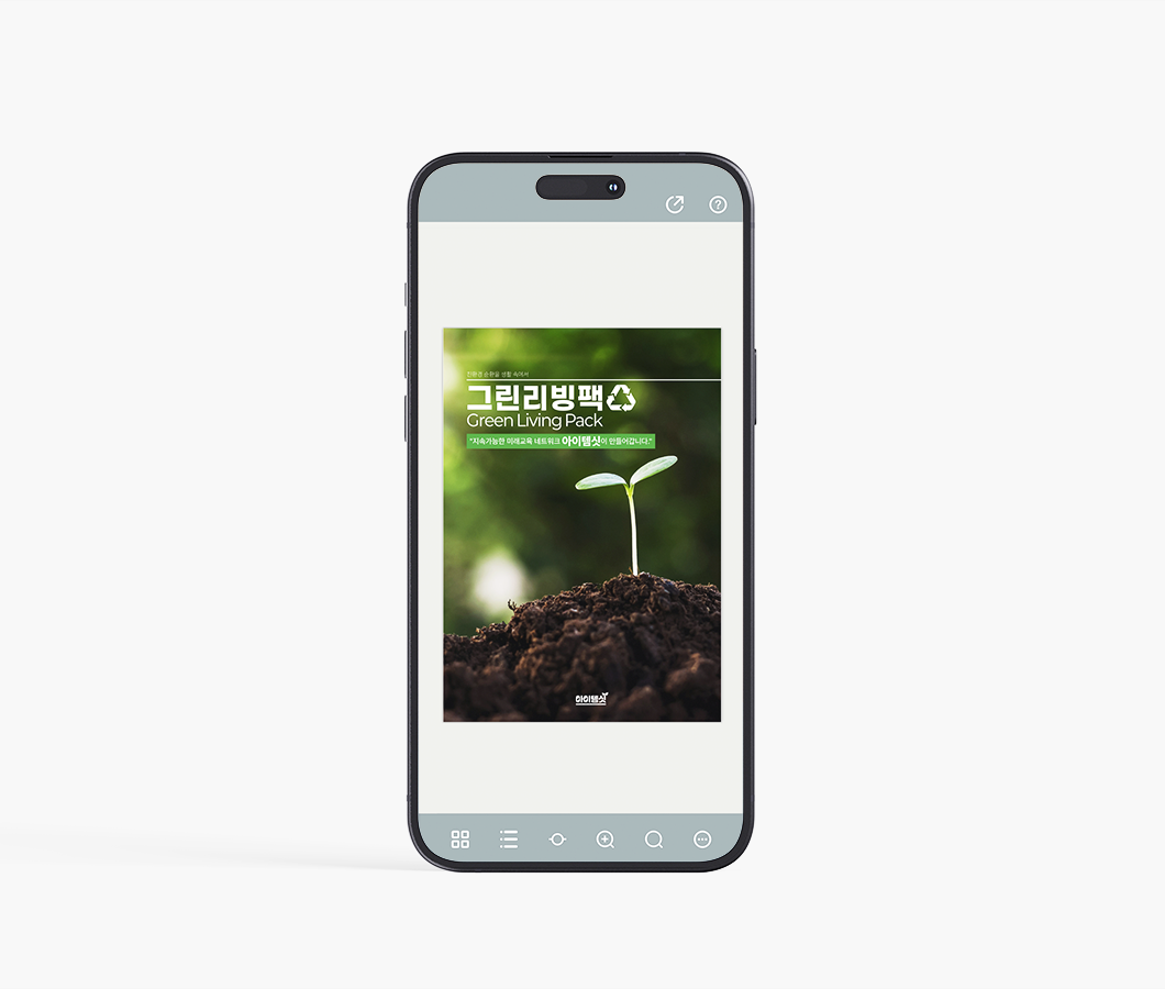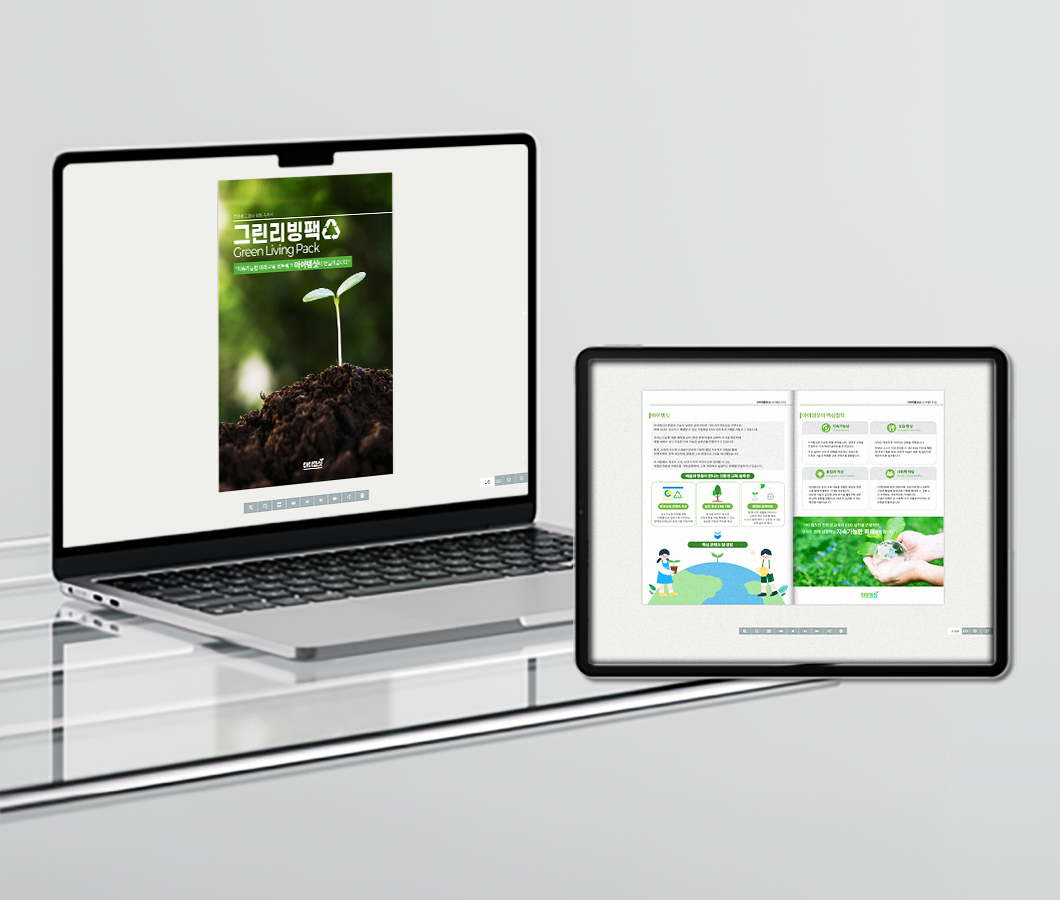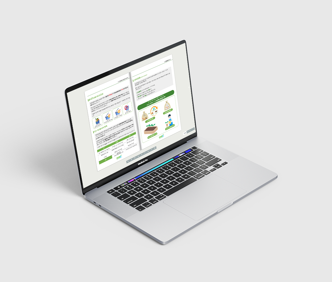 아이템싯_카탈로그 전자책 그린 컬러를 중심으로 한 깔끔한 레이아웃으로 친환경 브랜드 이미지를 직관적으로 표현한 디자인입니다. 실사 이미지와 아이콘을 활용해 정보를 간결하게 전달하고, 전체적으로 가독성과 정돈감을 높였습니다.