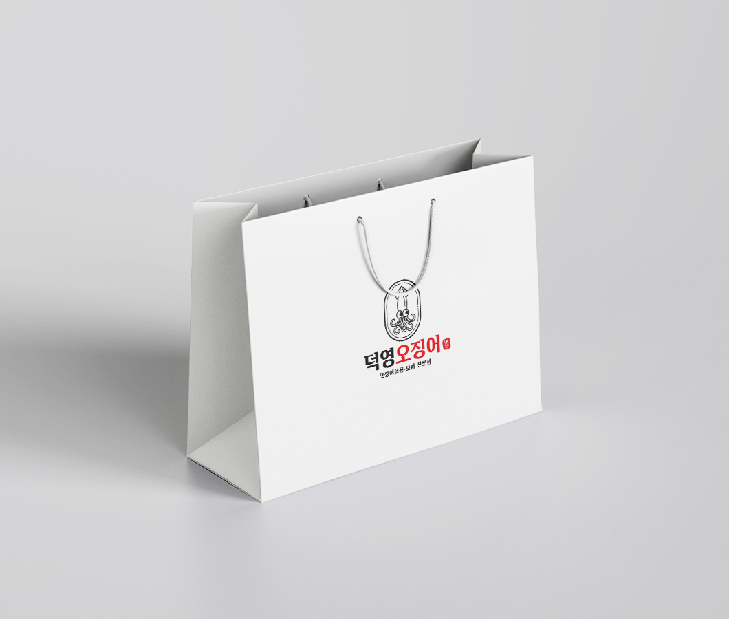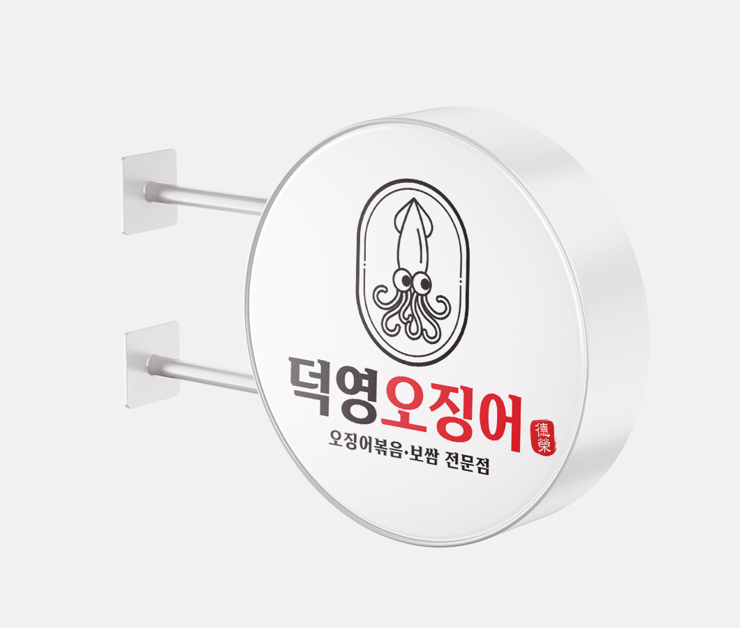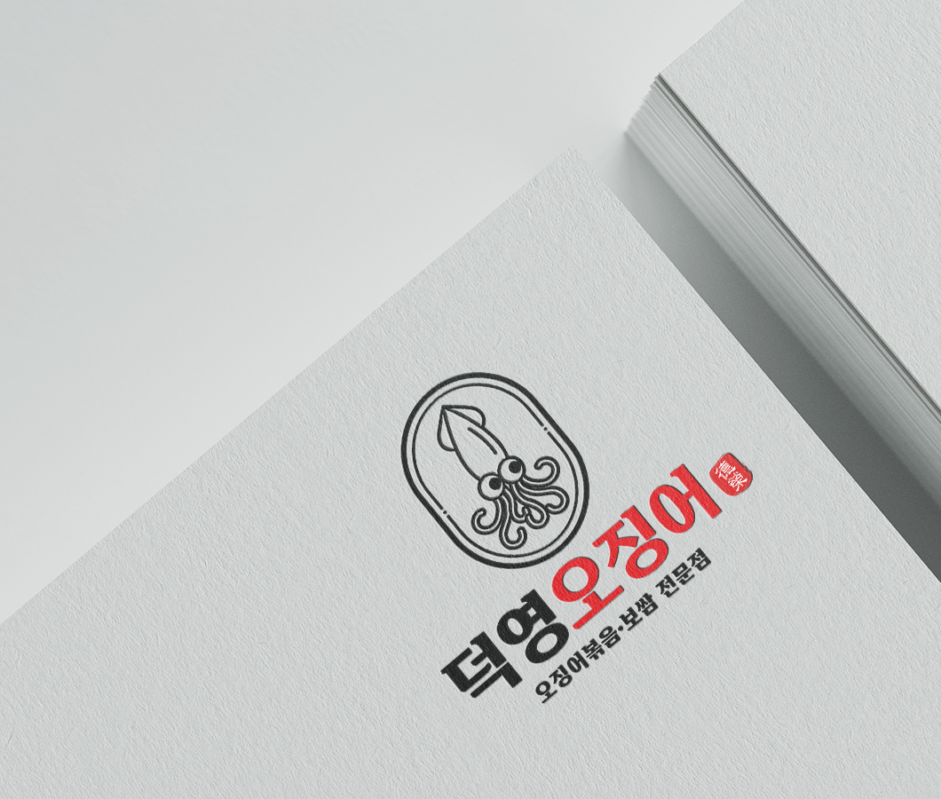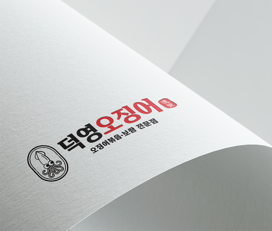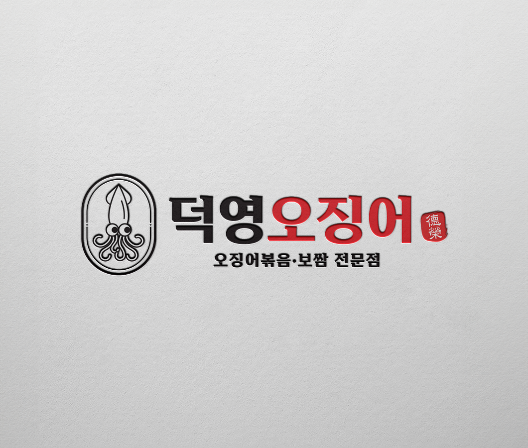 덕영오징어_로고 고급스럽고 정제된 느낌의 로고타입과, 메뉴의 주재료인 오징어를 심볼 요소로 그려 직관적이면서 세련된 브랜드 이미지를 표현하였습니다.